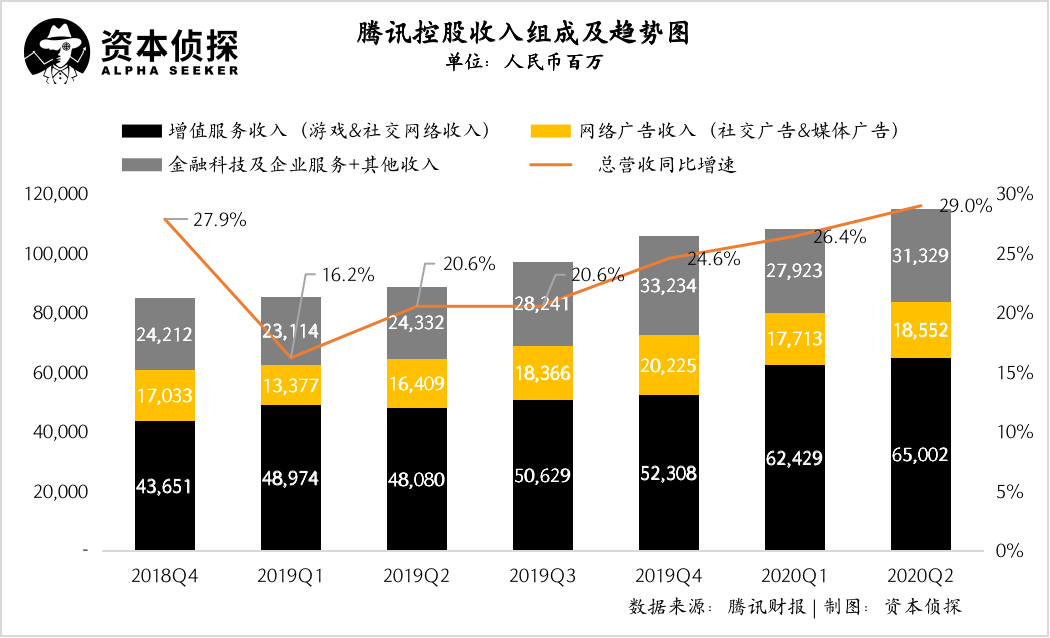 2020年二季度,騰訊增值服務業務的收入同比增長35%至人民幣650.02億元。